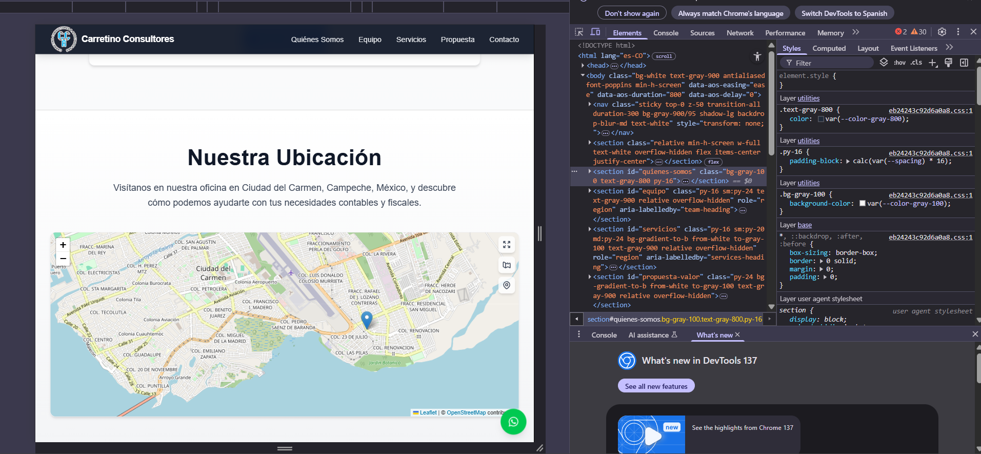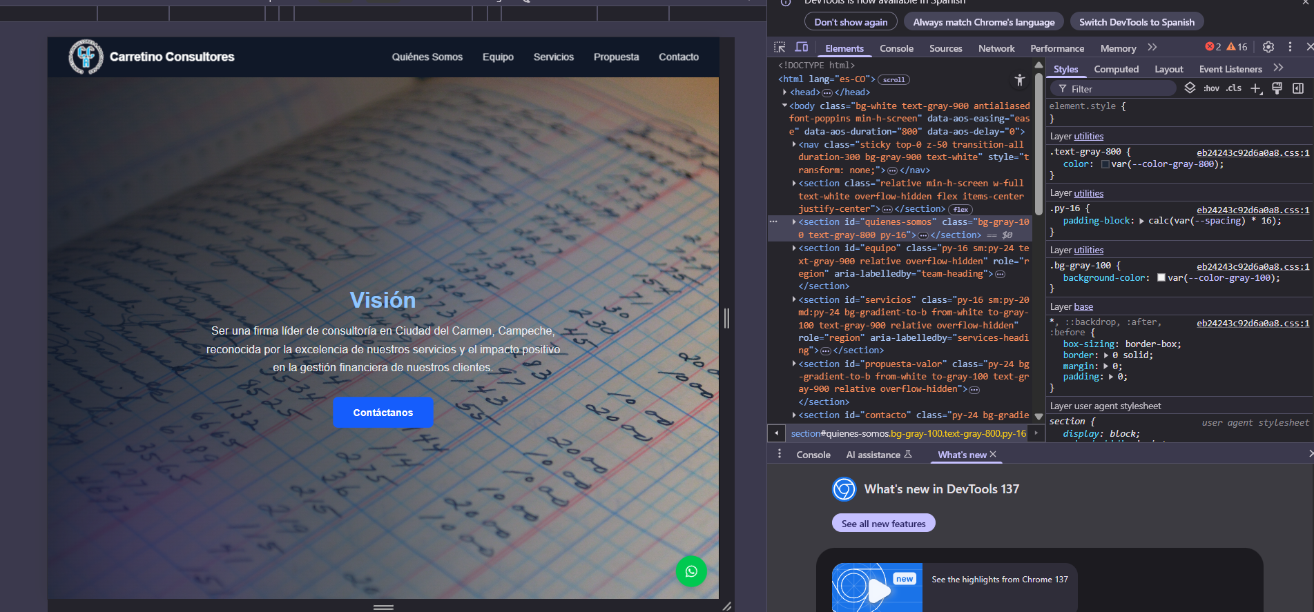 CCONSULTORES es una aplicación web tipo SPA desarrollada para fortalecer la presencia digital de un despacho contable. El objetivo principal fue crear una plataforma clara, accesible y estéticamente atractiva, que transmita confianza y profesionalismo en cada sección.